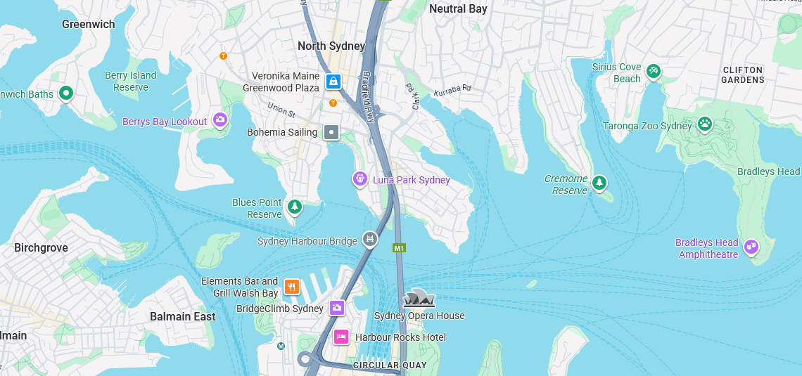 First of all let's not confuse North Sydney with Northern Sydney. First one is a suburb, while latter one is a bigger area that embraces multiple districts located north from Harbour Bridge. And this is where we're going to start our quest of finding a good remote angle for NYE fireworks.