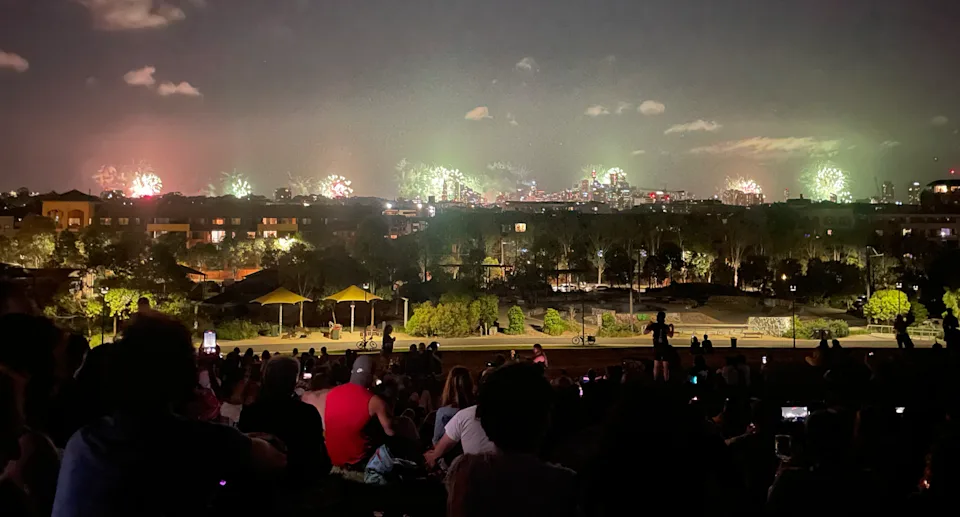 I wanted to use my own shots of fireworks made on the spot, but they are pretty low-quality because I was tipsy and couldn't hold a camera properly my camera is bad at night shots. How crowded? Roughly 5/10: fireworks began as we were walking into a park, and we still managed to get a very decent spot high up on the hill without having to jam our way through.