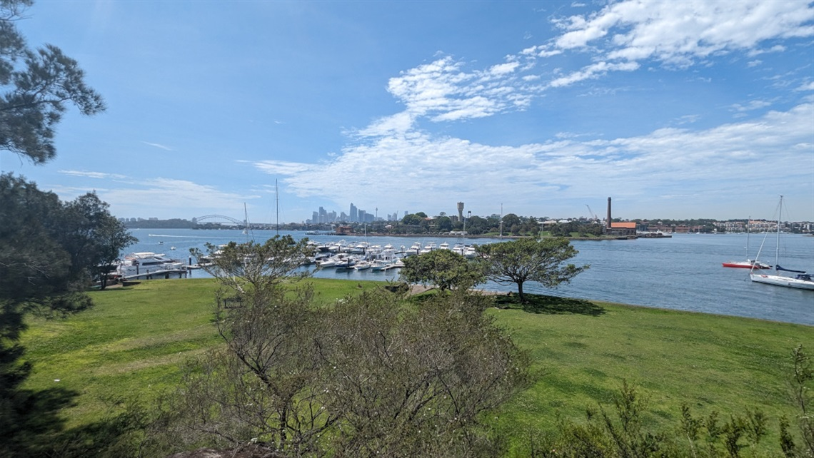 What's the fastest way to get to Inner West from Lower North Shore area? The answer is our old friend - Gladesville Bridge. South-east from the bridge lies a lovely suburb of Drummoyne which has a wide selection of little parks and reserves along the shore of Fern Bay. All of which are facing Sydney CBD and Darling Harbour, providing somewhat obstructed, but nevertheless magnificent city views: